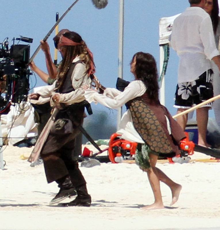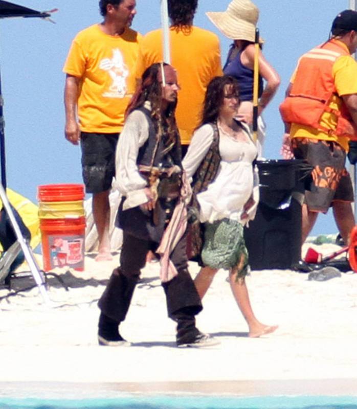 The first glimpse of the sets of Pirates shows us both the actors Johnny Depp and Penelope Cruz really getting along quite well. The two of them are mostly at sea. They are certainly going to race against time with the shoot because of the pregnancy of Penelope Cruz. So the film should be out soon.