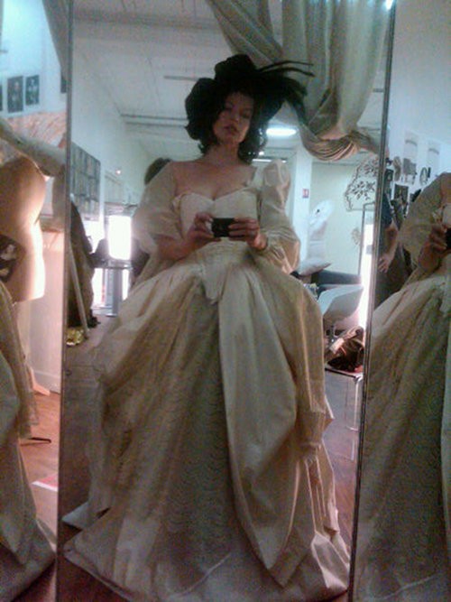 Milla getting all dolled up for the next Musketeers film.